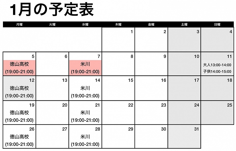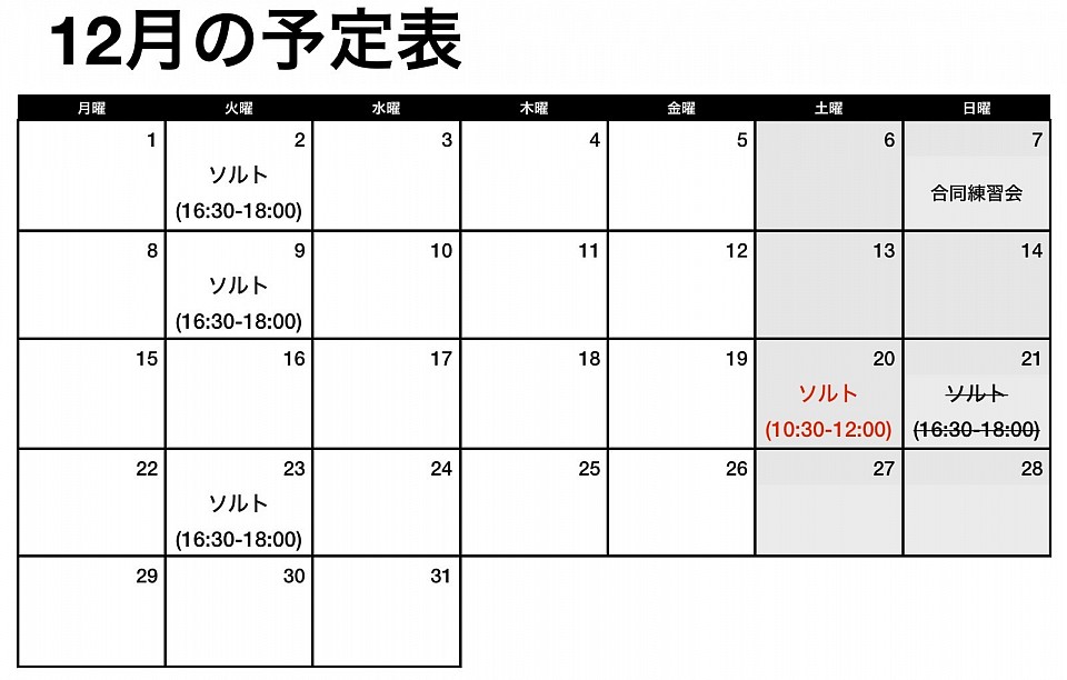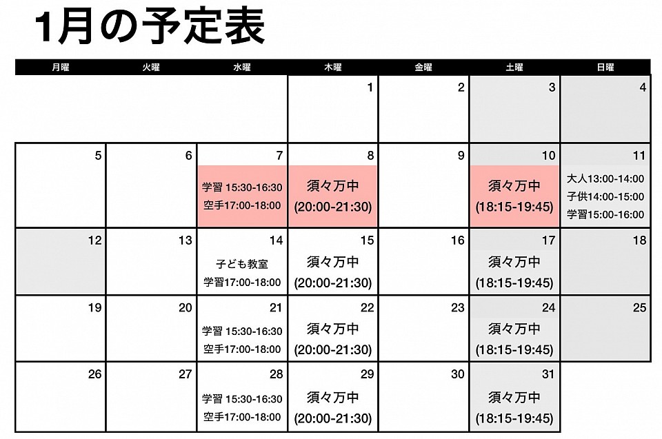 ○金曜日の稽古は「楽屋」が2回あるので、よくご確認をお願いいたします。